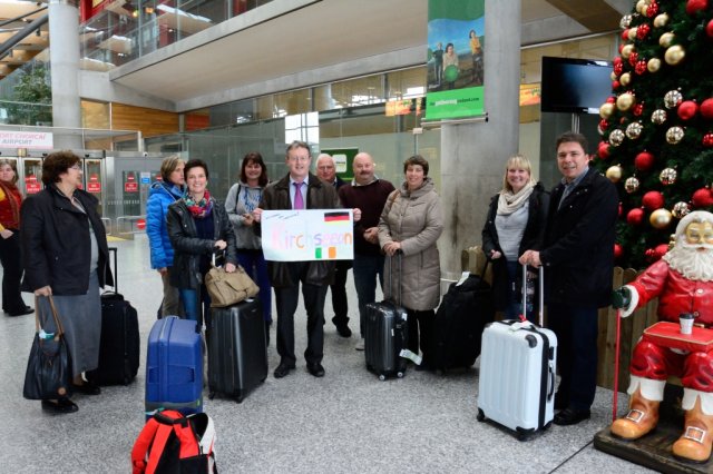 Um 8:30 Uhr brach die Kirchseeoner Delegation, Udo Ockel (Erster Bürgermeister), Christiane König (Marktgemeinderat),Thomas Kroll (Marktgemeinderat), Gerda Rothhaupt (Marktgemeinderat, Vereinskartellvorsitzende), Rudolf Rothhaupt (Vorstand Krieger- und Soldatenkameradschaft), Nadine Chamberlain (Vorstand KuKiKi), Stefanie Lutz (Nachbarschaftshilfe) und Anja Germeck (Kultur und Öffentlichkeitsarbeit) beim Rathaus in Kirchseeon auf, um nach Irland zu fliegen. Eine kurzweilige Fahrt zum Flughafen und ein ebenso kurzer Flug brachten uns zum Zielflughafen Cork im Süden von Irland.